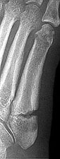 | A Jones fracture is a break near the base of the fifth metatarsal bone in